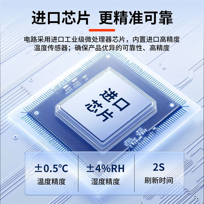 温度精度±0.5℃、湿度精度±4%RH,高精度、低漂移;