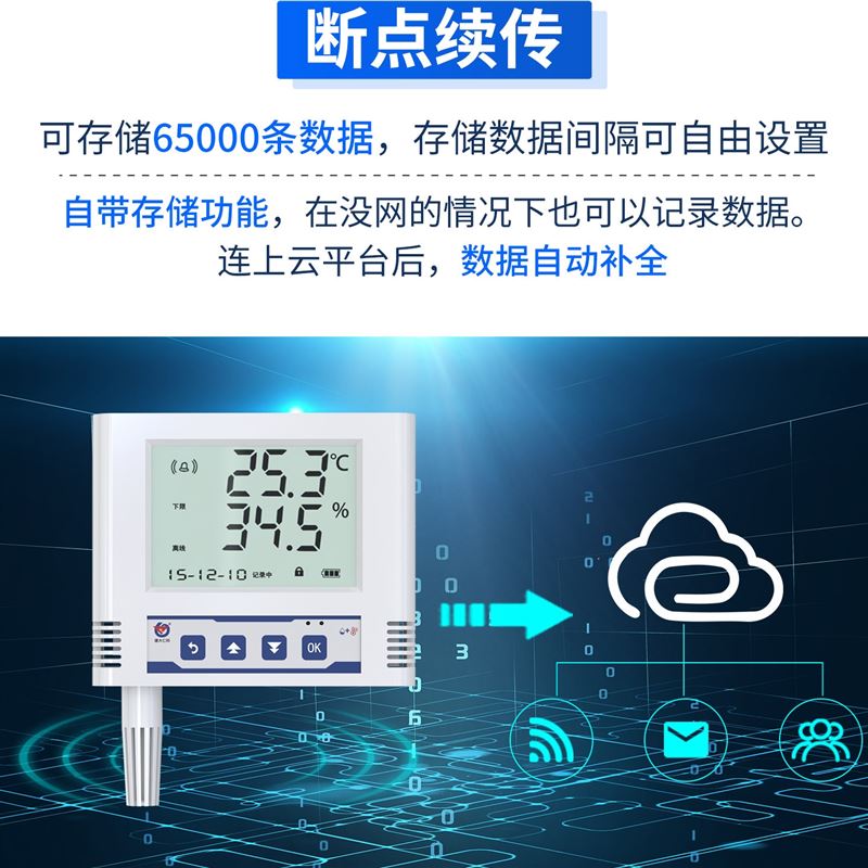 温湿度采集频率 2s/次,数据上传频率 5s~10000 s/次可设;