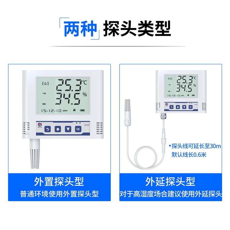 瑞士进口原装高品质温湿度测量单元,探头可外延,探头线最长可达30 米;