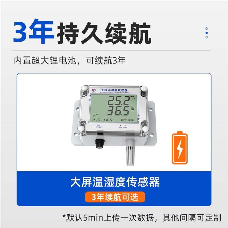 大屏显示温湿度数据、电池电量、信号状态;
