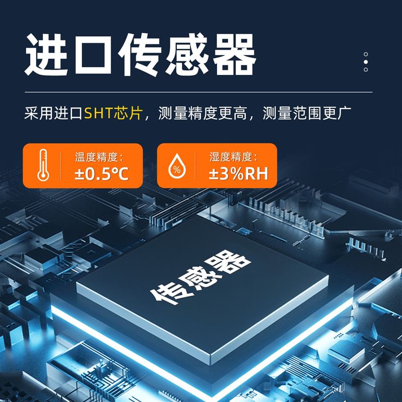 采用高精度传感器,温度精度可达±0.4℃,湿度精度可达±2%RH,性能稳定可靠;