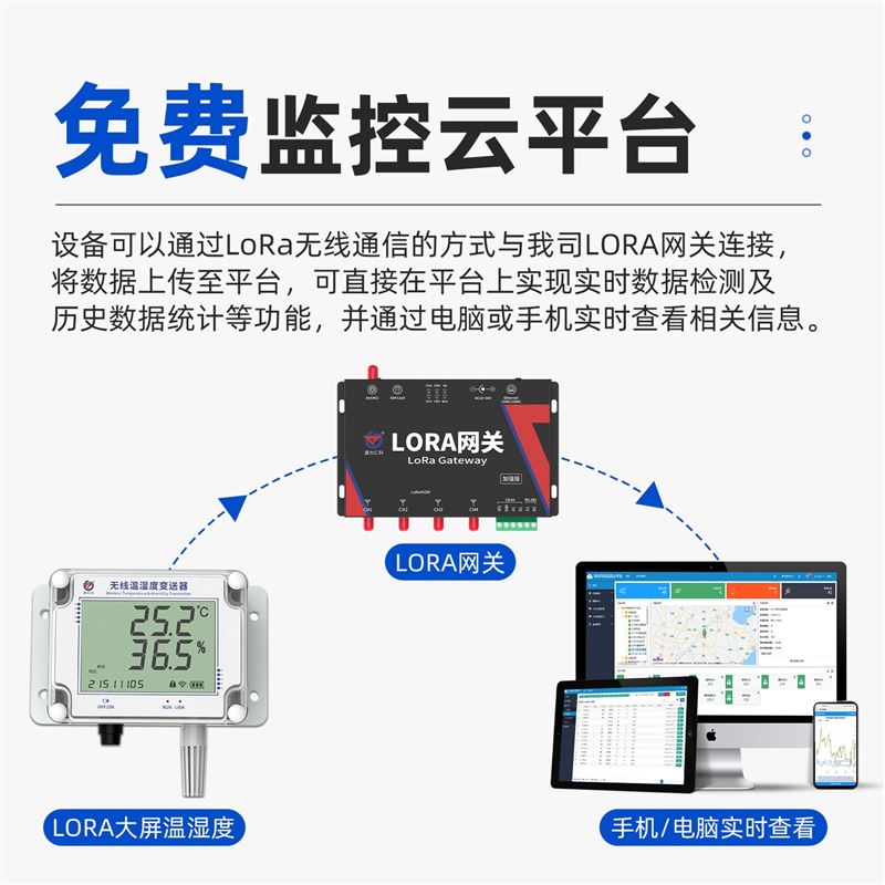 搭配 LORA 网关使用可在平台与服务端查看设备温度、湿度、电池电量、信号强度;
